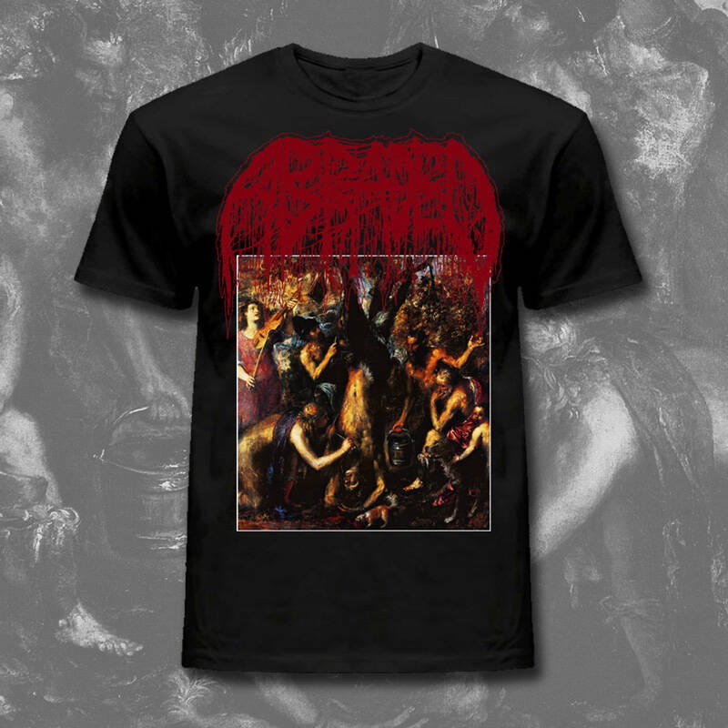 Pełnokolorowy nadruk na czarnej koszulce Gildan Heavy Cotton