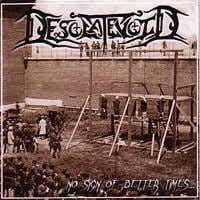 If Desolatevoid’s debut, Self Medicated Psycho Therapy (2006), contained enough filthy groove to be the aural equivalent of dipping your toes in a used colostomy bag the size of Lake Superior, its follow up, No Sign of Better Times, will find the listener fully submerged. Allow opening track, “Isolation Embrace,” to be the unexpected violent shove from behind that sends you careening from the relative safety of the shore into the stench and the muck. It is a song as fast and remorseless as a down swing in today’s Stock Market. Lyrics are awash in paranoia, alienation, and rage. Andy Howard’s vocals display more of a range this time, while somehow managing to sound even more bestial. The rhythm section of Tim Smith (drums) and Nick Carroll (bass) is driving and tight. And the riffs and leads, laid down by newcomer Stolp and veteran Brent K., are heavy and contagious (the spectre of founding member Patrick Sova all over this album). In fact, this album is a 30-minute summation of the last 30 years of heavy metal. There’s the doomy groove of “Crimes Against My Sanity” (clever), the jet black punk junk of “Wreckage of Yesterday,” the black metal flourishes of “Way Past Wits End,” the classic death/grind opening and thrashy breakdown of “F***ed and Furious,” and surprise of surprises, the NWOBHM riff spread throughout the album’s opus, “Amongst the Scattered Pills.” It’s Metal History 101, kids. Get off the bit torrents. Buy this CD.