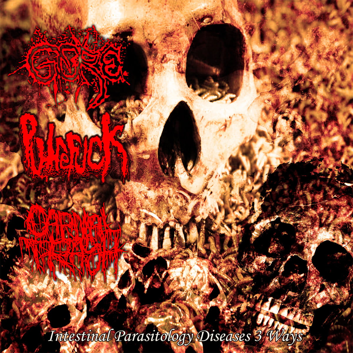 "Intestinal Parasitology Diseases" – split 3-way z udziałem brazylijskiej legendy GORE: 7 nowych utworów w stylu starego, splatter gore grind + cover GG Allina. Putrefuck, projekt z Meksyku i Hiszpanii, prezentuje 6 niepublikowanych kawałków z zagubionego dema z 2015 roku. Argentyński one-man band Carnal Trash dokłada 14 utworów w starym stylu Autophagia.