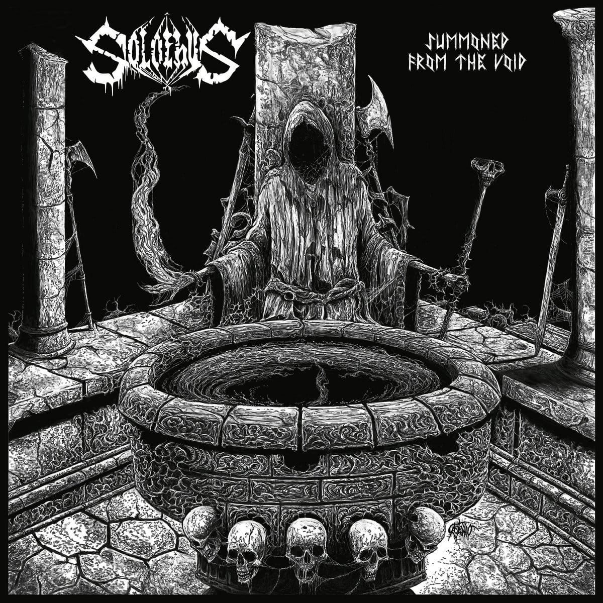 DOOMENTIA and SOLOTHUS go way back, years before those Finns got signed to 20 BUCK SPIN and laid waste all over Europe in 2022 while promoting their third full-length, Realm Of Ash And Blood. In 2016, DOOMENTIA already had the privilege to release their previous album No King Reigns Eternal and to many, this was their first ever encounter with what is now regarded as one of Europe most impressive and faithful follower of the early 90’s classic death/doom sound. Albeit one as much indebted to the 80’s heavy-metal tinged style of CANDLEMASS as to the early crushing madness of ASPHYX or CIANIDE, as if we needed a reminder that the tag ‘doom/death’ included the word ‘DEATH’. But we should give credit where credit is due. SOLOTHUS’ stratospheric career was initially kickstarted by 2013’s Summoned By The Void, originally released on CD only in 1,000 copies by Spanish powerhouse MEMENTO MORI and now available for the first time ever nine years on LP version, with a stark and bleak reinterpretation of the original artwork by esteemed Spanish artist Juanjo Castellano, already responsible for No King Reigns Eternal cover. What’s most striking about this cruder yet no less powerful recording by the band’s original line-up is how well-versed in the art of epic structures and crushing mid-tempos they already were. As suggested by the dreamy organ/acoustic guitar introduction known as “Frostbane Overture”, far from the expected occult-obsessed or tales of misery, those Finns instantly take you here far away in a mystic and dark world full of wizards, cosmic forces and dark tales. It’s no coincidence that this five tracks and 43 minutes long first impressive recording pinnacle turns out to its final and crushing track “Upon Shattered Lands”, where frontman Kari Kankaanpää screams at the sky that he’s aptly been “Destroyed by Death/Possessed by Doom”… So let yourself be summoned by the void once more!